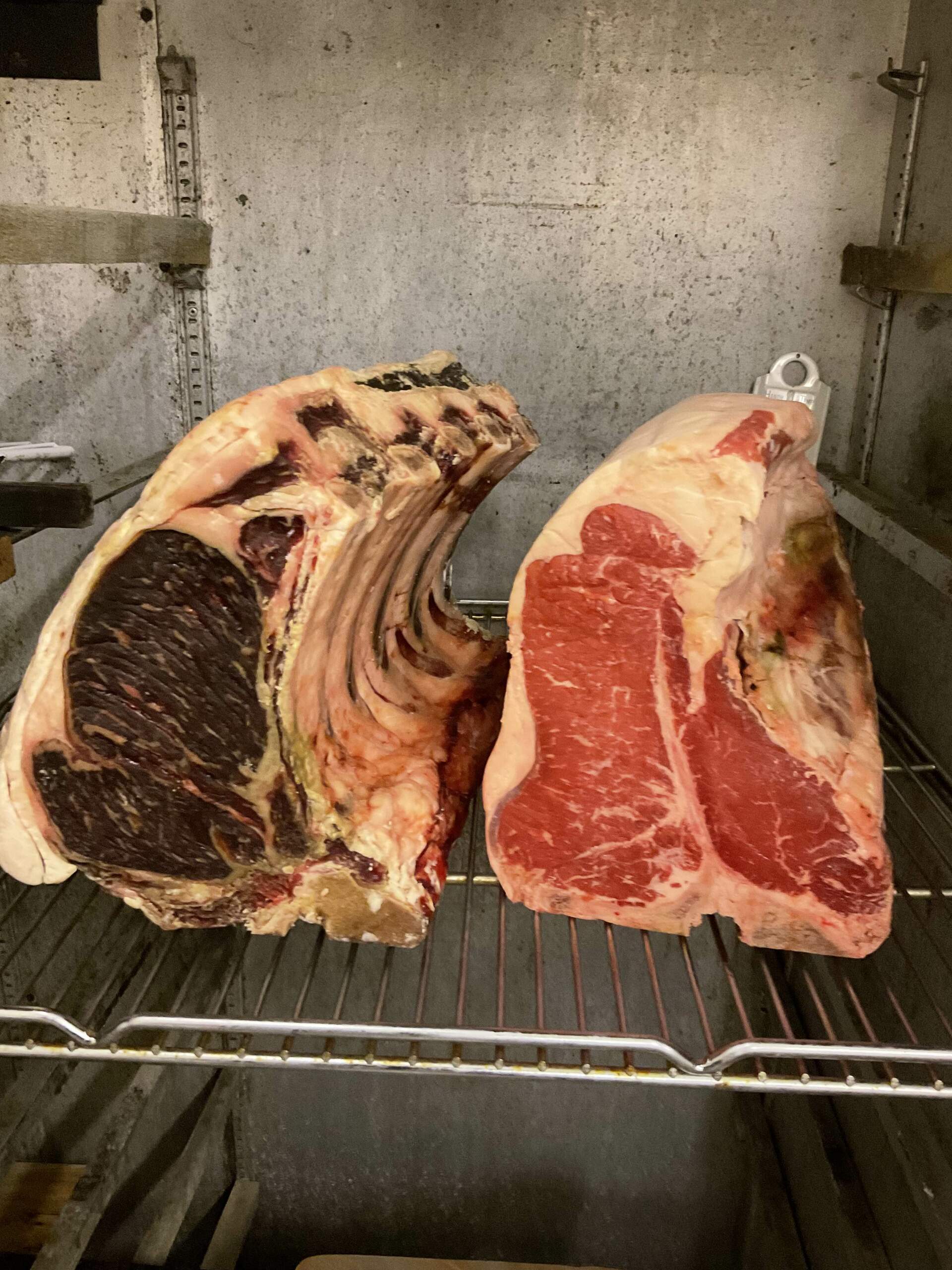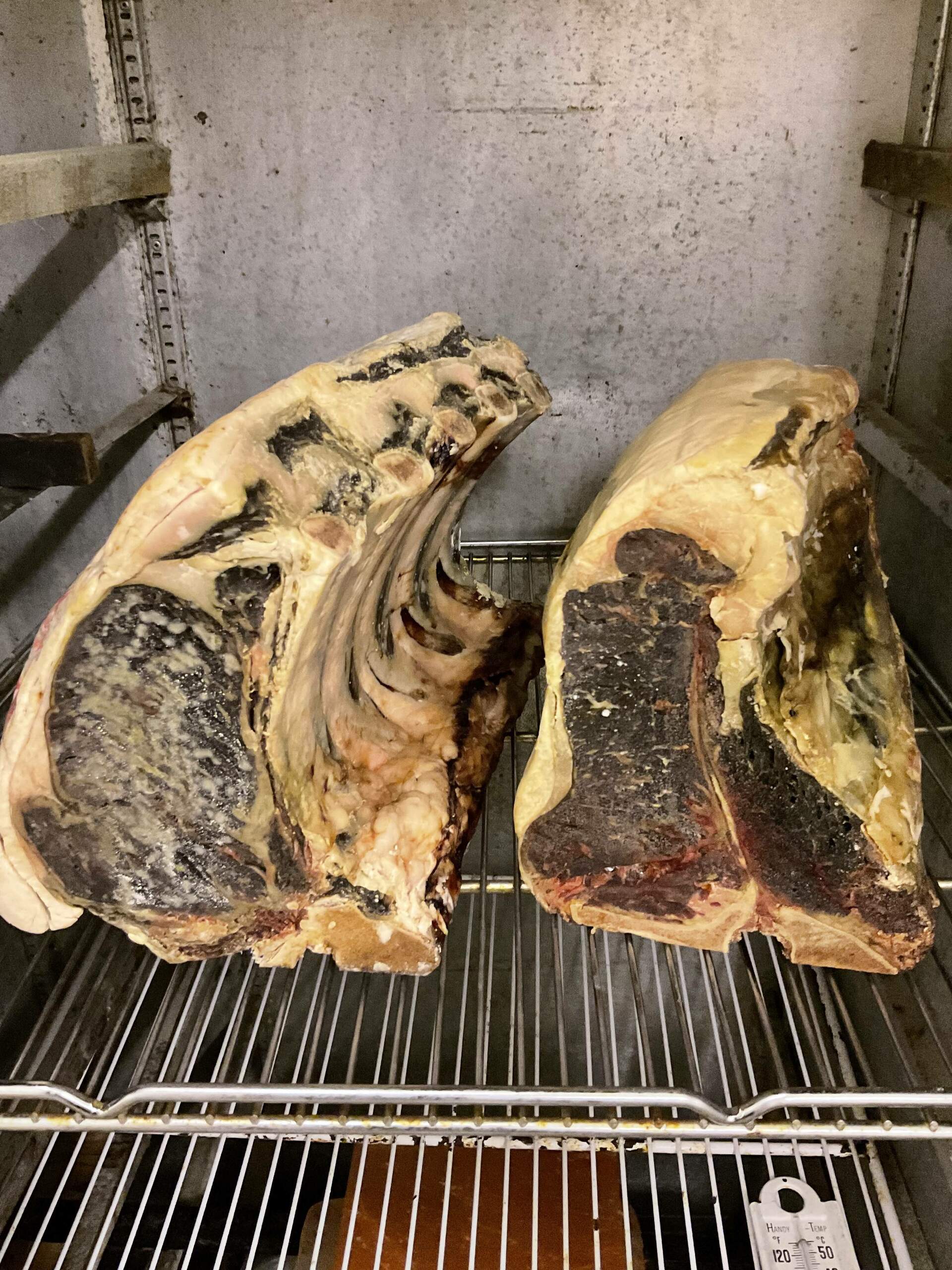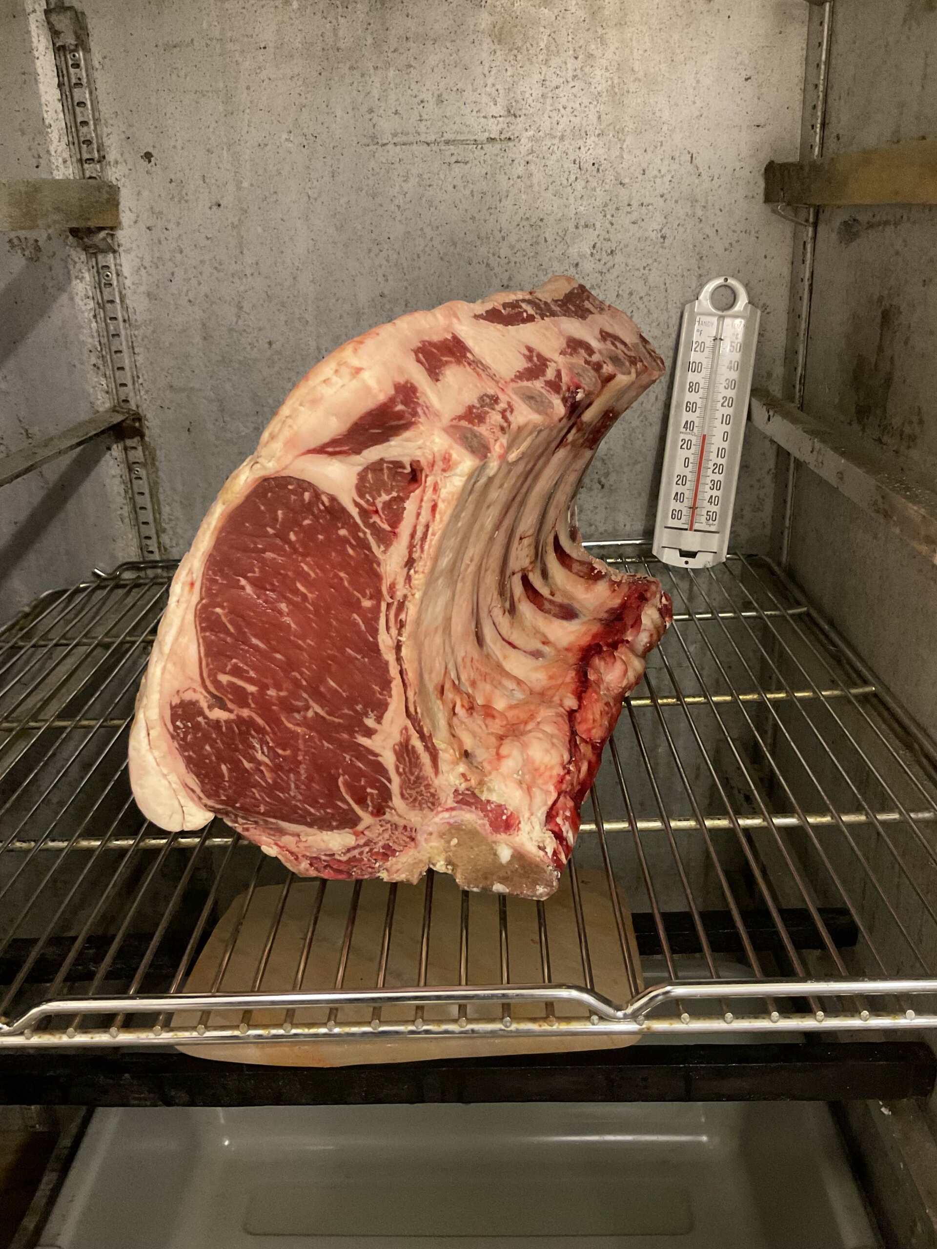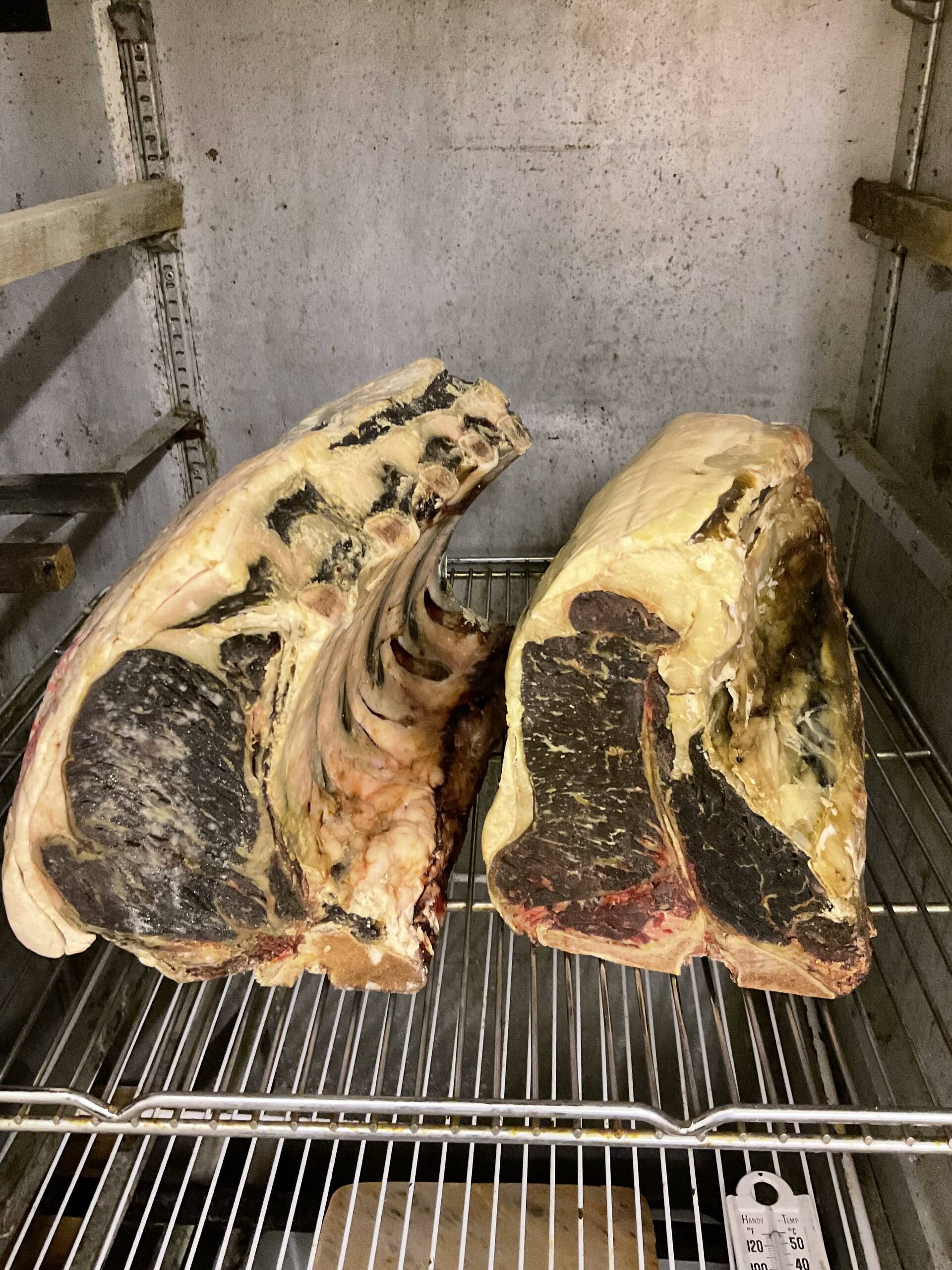 Dry aging of a bone in Rib roast and Tee-Bone Roast (New York Strip with Tenderloin)