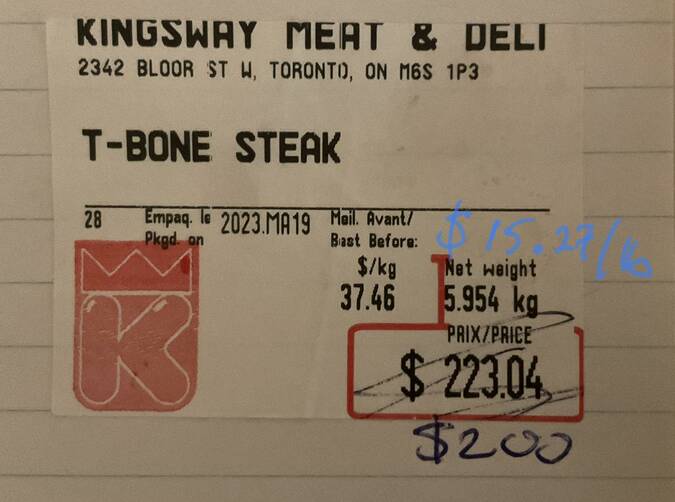 Price for the Tee Bone Roast